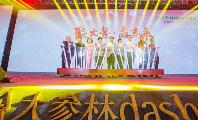 ag博天堂药业集团董事长刘景萍女士与大参林医药集团董事长柯云峰先生、中国医药商业协会执行会长付明仲女士等嘉宾共同开启了“聚大势•赢未来"大参林工商合作峰会的大幕。
